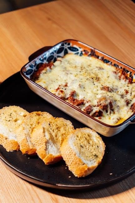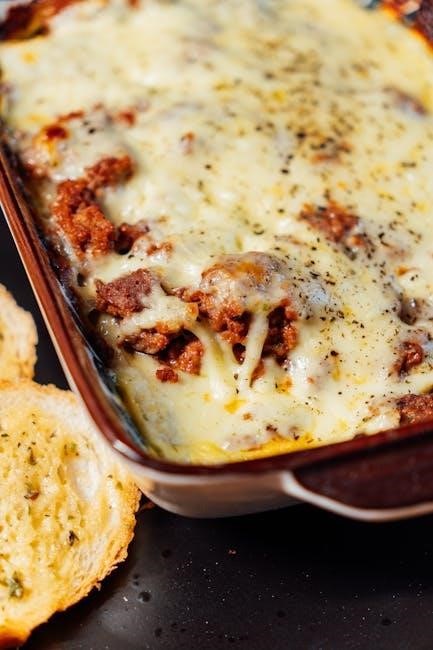 Achieving a perfectly melted and bubbly cheese layer is crucial for a satisfying lasagna experience. When using a cheese blend‚ ensure it’s evenly distributed across each layer‚ not just concentrated in one spot. A combination of mozzarella‚ ricotta‚ and Parmesan is classic‚ offering both stretch and flavor.